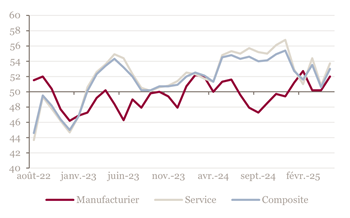 Malgré une surprise positive sur la croissance au premier trimestre avec des chiffres du commerce extérieur biaisés par la hausse des exportations en anticipation des droits de douane, les données d’enquête révèlent une activité économique atone au deuxième trimestre, en dépit d’un environnement de taux favorable.