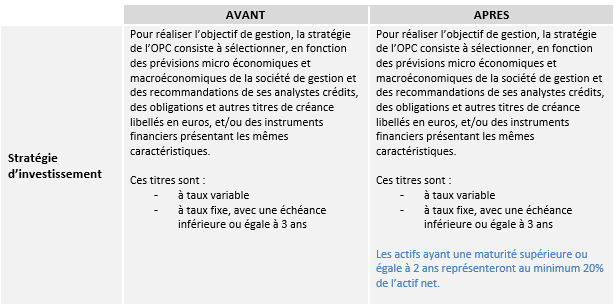 Cette modification est sans impact sur la gestion du Fonds.